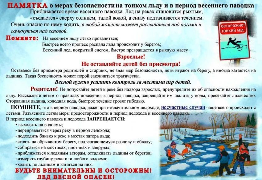 Правила безопасного поведения школьников во время весеннего паводка и половодья.